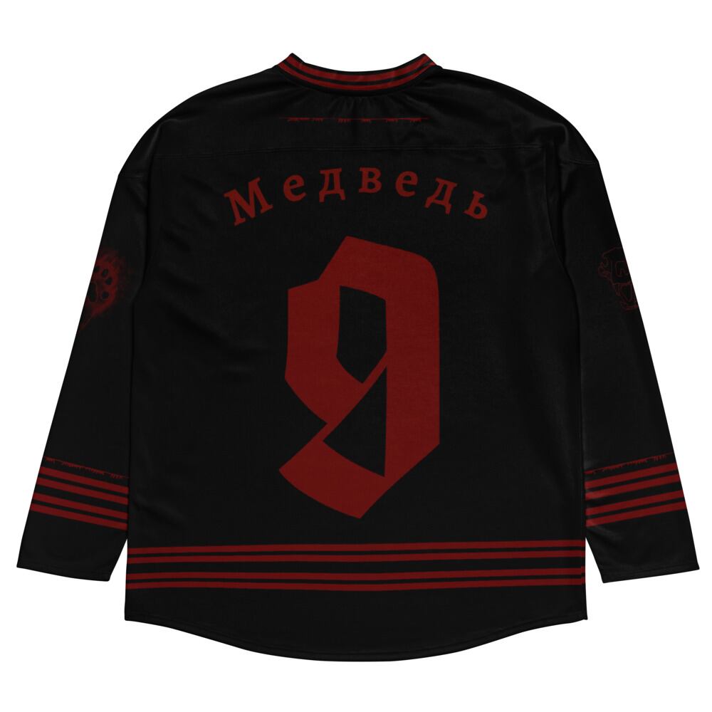 正面には武器を構えたクマのイラスト、背面にはロシア語で熊とそして背番号( 9 )が描かれています。